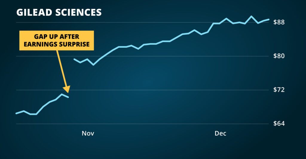 Going back to our example, Gilead Sciences continued moving up for the next month and a half, increasing by 19%.