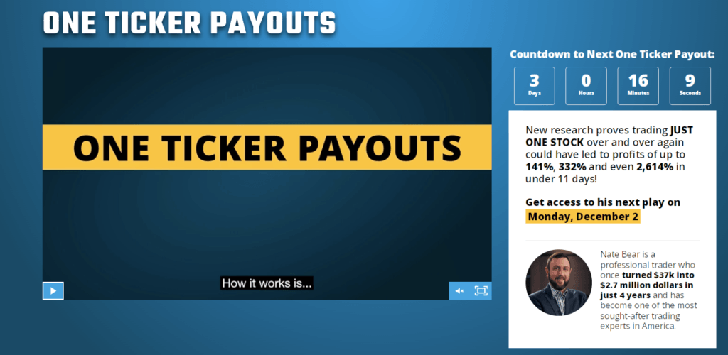 - Construction worker turned millionaire trader Nate Bear is recommending we focus on just one stock that will give us consistent “One Ticker Payouts.”