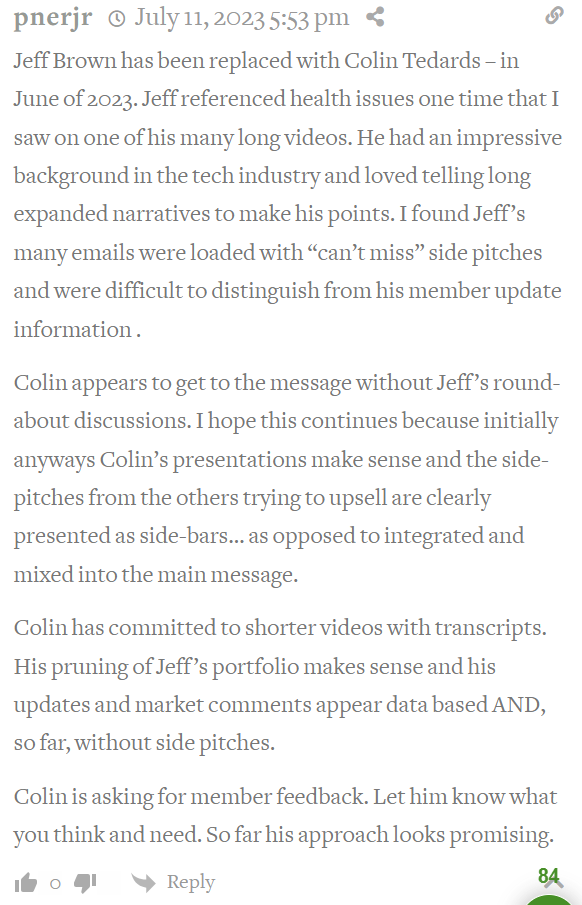 When Tedards replaced Brown, many were disappointed. This was understandable. Many subscribers have paid good money to get insights specifically from him.