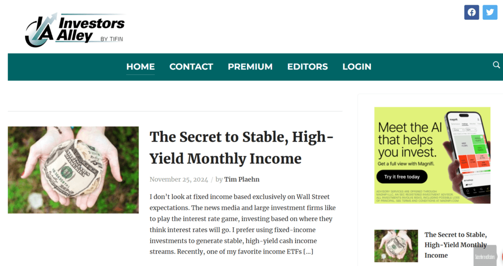 Investors’s Alley is an investment newsletter website that compiles articles and services from different investment analyst experts. The company is based in New York and has two editors, namely Tim Plaehn and Jay Soloff.